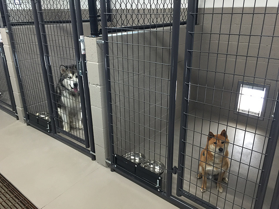 We offer superior large indoor/outdoor runs. Our indoor kennels are 5’ x 6’ and the outdoor run is 5’ x 10’. They are attached by a doggie door, which is open 24/7, so your dog has 80 square feet of space to access.